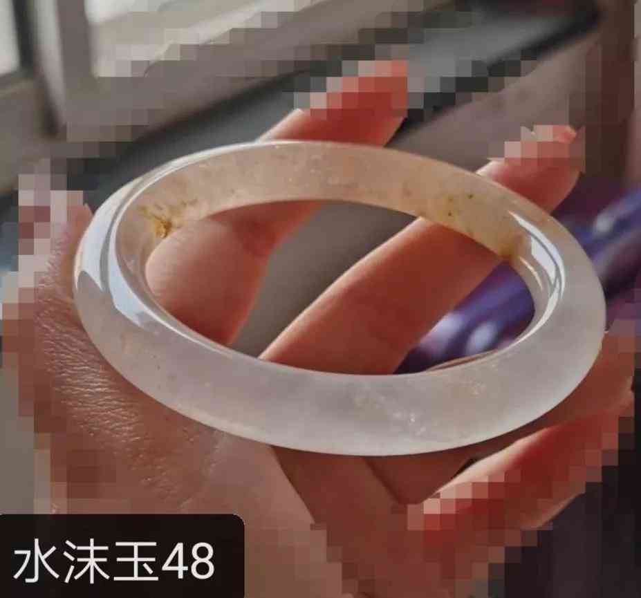 卖家说,这只48的水沫玉镯子,有瑕疵,不议价,包真,不退换。细看,它上边有黄色,与黄霉斑很相似。