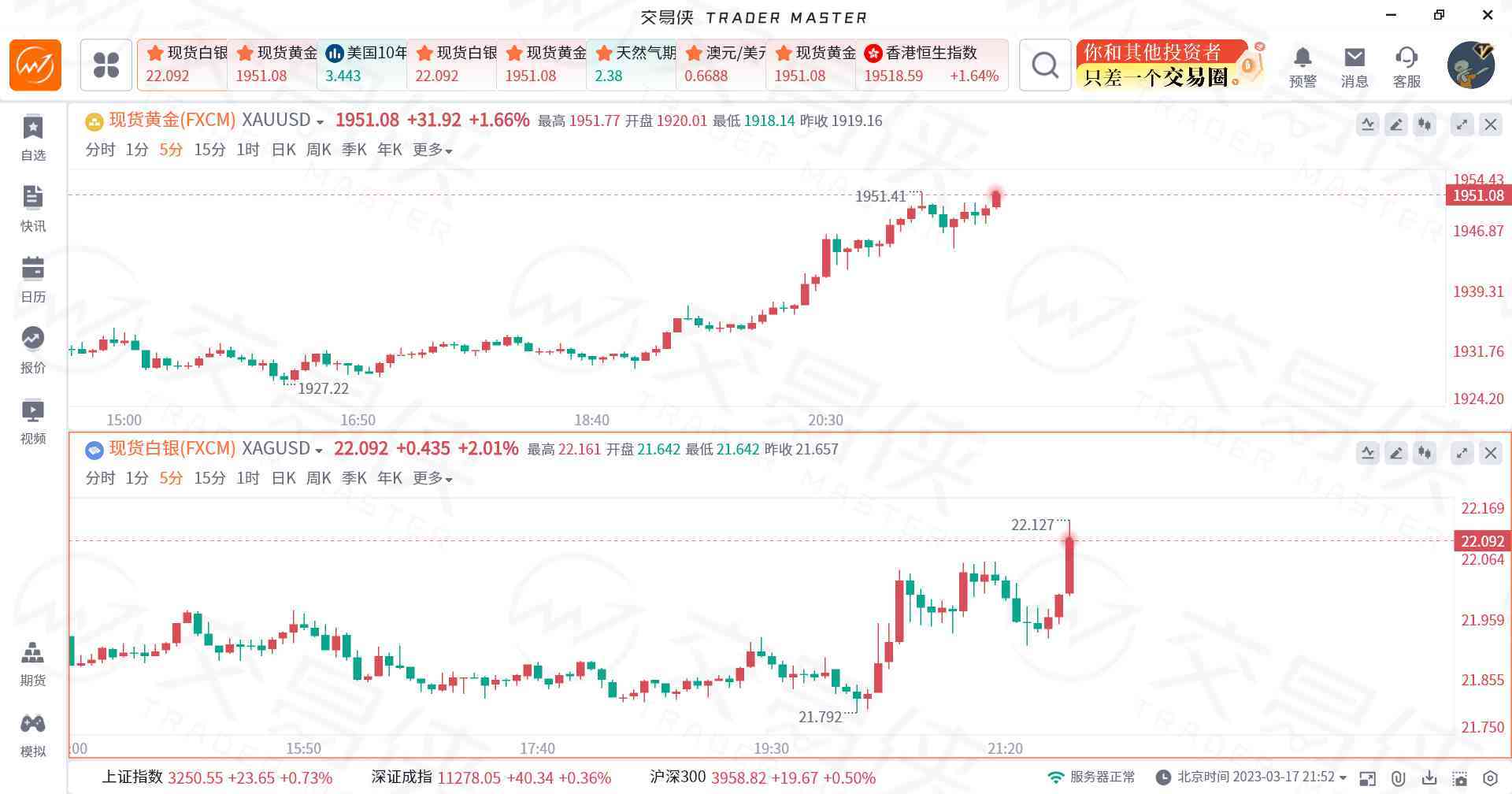 周五美盘前,现货黄金持续拉升,站上1950关口,续刷2月初以来新高,有望连续第三周上涨,并录得自11月中旬以来的最大单周涨幅。原因是全球银行业危机促使投资者纷纷涌向这一避风港。此外,现货白银日内涨超2%,料将录得12月初以来最好单周表现。