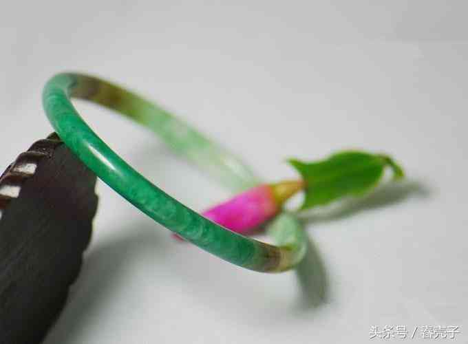 八、鸳鸯镯:这个不是指镯子上雕刻一对鸳鸯的概念(那个属于工镯),而是指镯子成对。这里成对是指从一个玉胎里开出来的两块料,或者颜色纹路极为相似;或者色段正好互补(比如一个是满春带绿,一个是满绿带春);或者颜色正好是两个极端(一翡一翠,或者一阴一阳,就是绿偏蓝和绿偏黄);等等,于是巧接天工做成一对镯子。