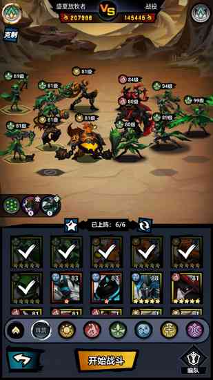 前期战力主要依靠英雄的等级以及进化次数,同时由于传说英雄出货几率超级高,所以搭配阵容时优先选择传说英雄上阵。如果后期遇到更合适的英雄,可以使用传承功能无损继承等级,如果等级最高的6位英雄等级相同或者相差无几,也可以通过联结水晶快速提升英雄等级。选择阵容时,还需注意抽到的传说英雄哪些阵容比较多,可围绕该阵营搭配3+3组合(3+3阵容指:使用两种阵容每个阵容上阵3个英雄),该组合容易组成,还能触发特殊的阵容效果,在前期可打出不错的效果。