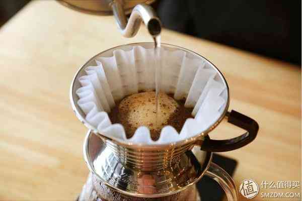 将咖啡研磨成粗粉放在滤杯与滤纸中,首先通过缓慢加注90℃左右的热水使咖啡粉膨胀成上图中的小包,闷蒸一分钟左右,然后在缓缓注水,在咖啡粉上绕圈,保持水流稳定缓慢,通过滤纸渗透得到一杯手冲咖啡,不同的滤杯注水方节奏略有不同,不过原理基本如此。具体手冲方式也可以通过视频学习。