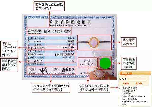 ② 看看实物与证书上的图片是否一致,有条件也可以称一下重量对比。再者所有鉴定证书上都有一个二维码,扫一下核对证书标注的信息是否一致。