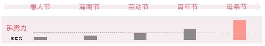 微博对去年4、5月份的节日节点进行了分析。以热搜上榜数量为维度来看,母亲节热度远超其他节日,而且相对于愚人节、劳动节、青年节等节日,母亲节的氛围也更契合品牌调性。于是,周大福选择将母亲节作为提升“钻石”声量的机会。