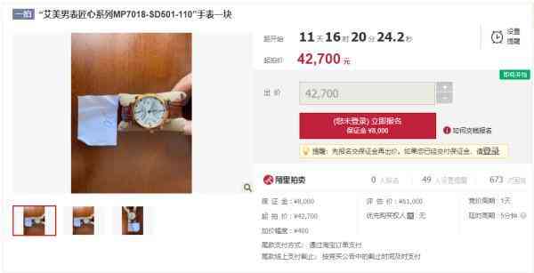 “艾美男表匠心系列MP7018-SD501-110”手表一块,评估价:6.1万元,起拍价:4.27万元。