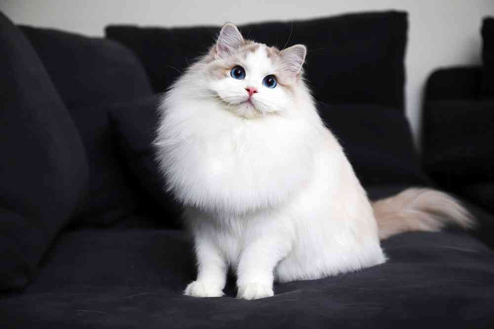 1、布偶猫拥有雪白浓密的长毛发,蓝宝石一样的大眼睛,长得甜美又可爱,颜值非常高,被称为“猫界小仙女”。
