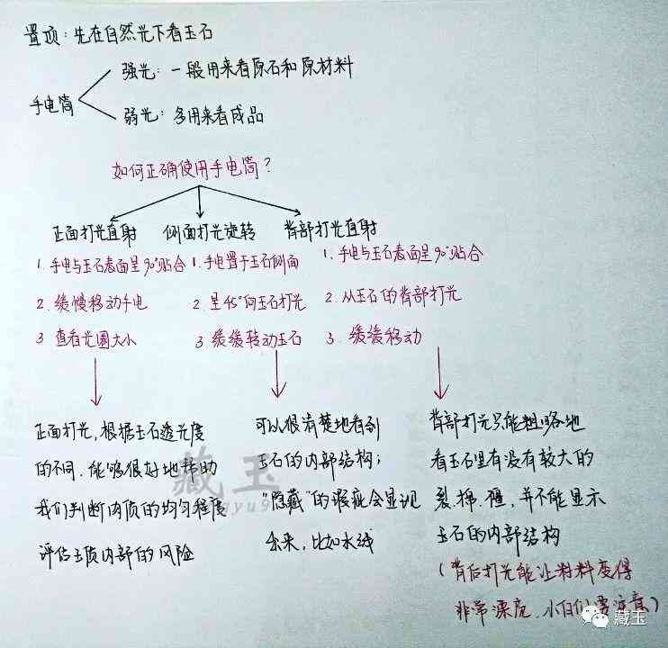 通常来说,用手电筒观察一块玉石有以下三种方式: