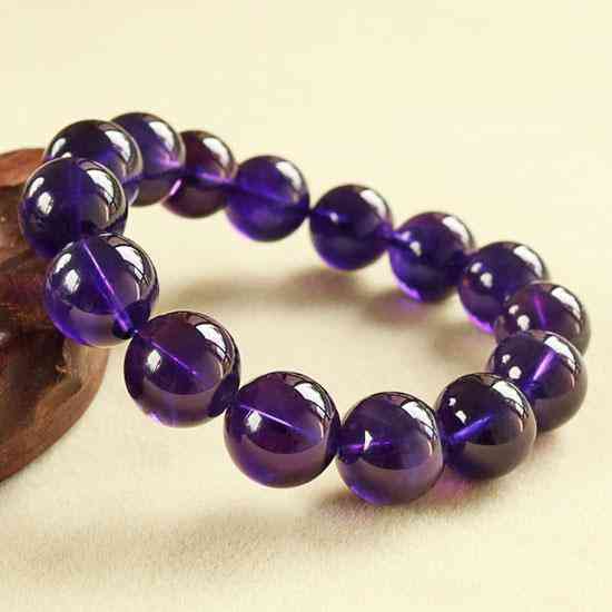 2、色泽:紫水晶色泽越鲜艳价格也就相对来说越贵,天然水晶的颜色不会很均匀,同一个紫水晶手链上不同的珠子甚至一个珠子上都可能颜色不均一,尤其是放在水里能明显看出来,而合成的颜色都比较均一。