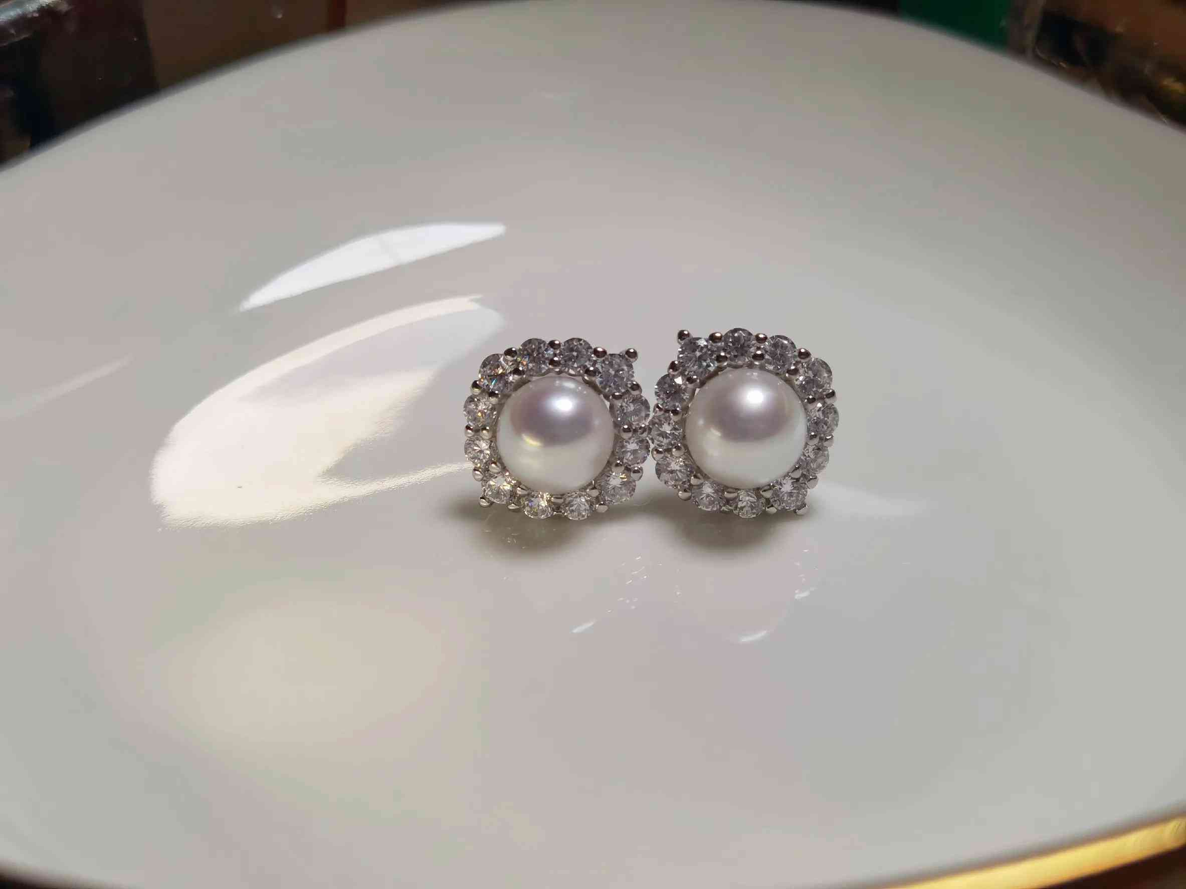淡水耳钉,其实实物好像是不带粉光的冷白