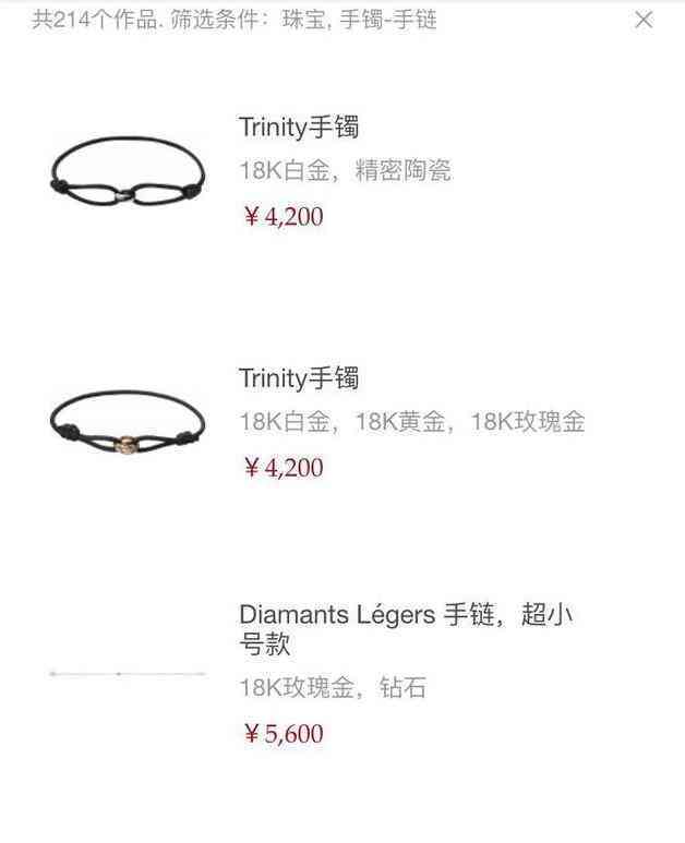 说到卡地亚的手镯相信大家反应究竟是:奢侈品,太贵了。毕竟卡地亚的最经典的Love系列手镯最便宜的也是2万多。其实,卡地亚的手镯中也有便宜的,比如像TRINITY系列的白18K金+陶瓷的人民币价格才4000多。