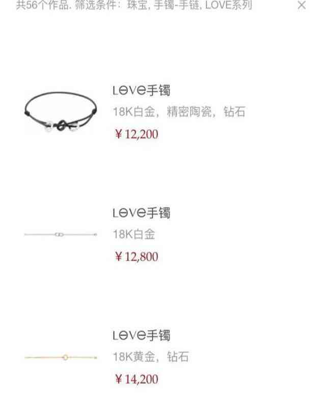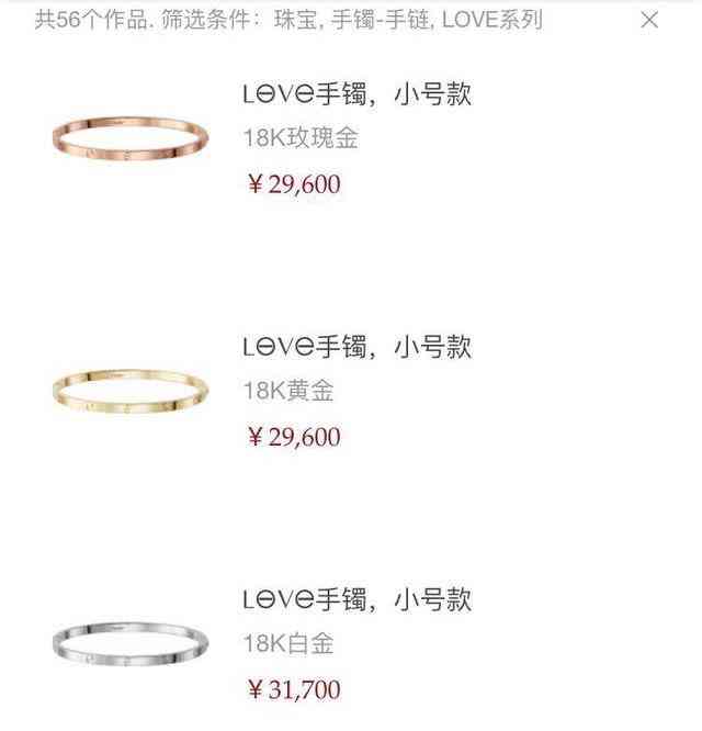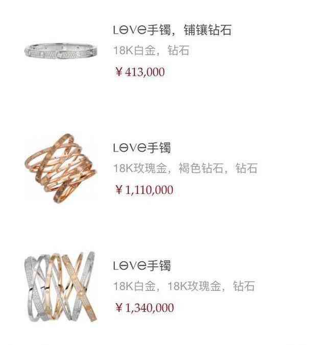 2、LOVE系列,最便宜的12200人民币。标志性的款式,价格最低29600起,最高1340000。