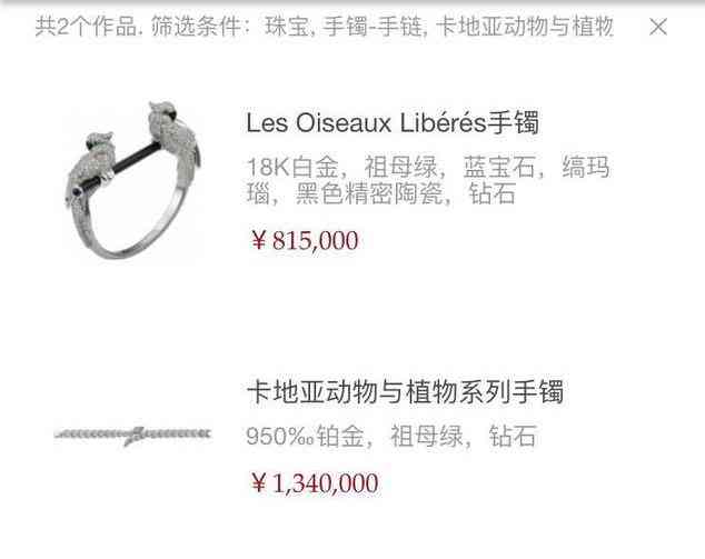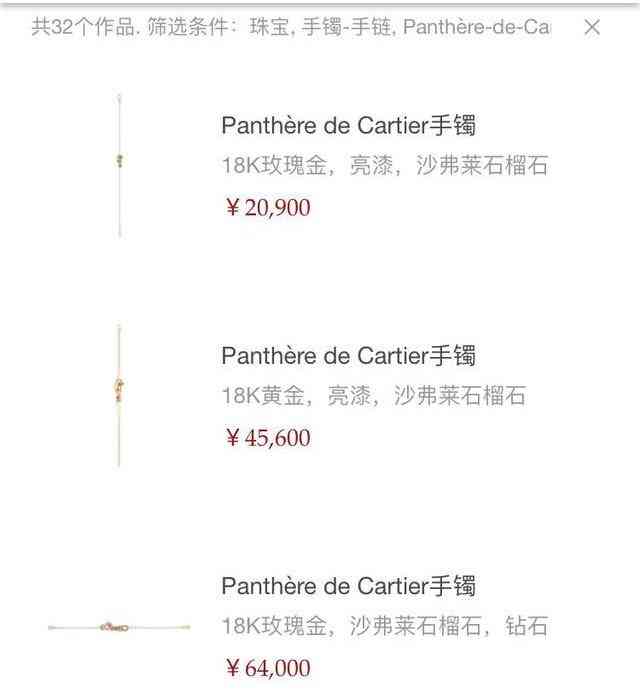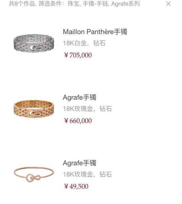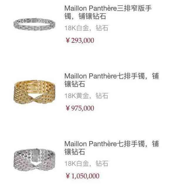 3、Maillon Panthere系列,最便宜的46500元,最贵的1050000.