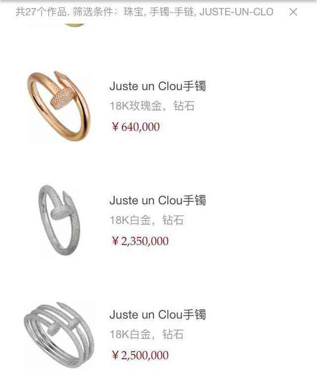 20190713卡地亚官网上显示有162种手镯款式,今天我整理了价格表,手工整理可能会有误差。文字先概述,后面的截图有款式+价格详情。