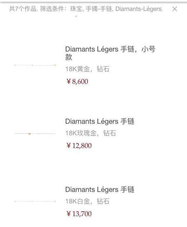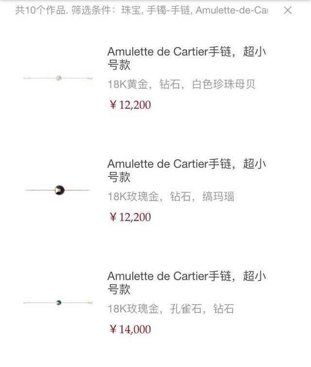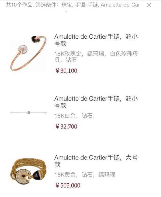 7、Amulette de Cartier手链最便宜12200,最高50.5万。