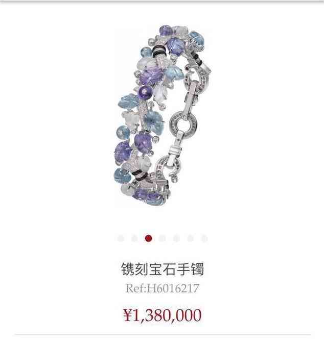 15、镌刻宝石手镯138万。18K金,蓝宝石、坦桑石、月长石、缟玛瑙、钻石。