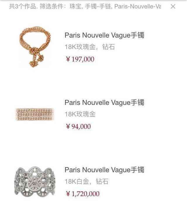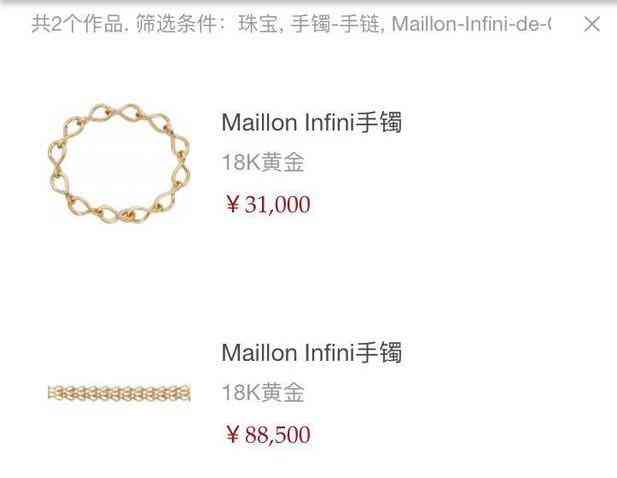 Maillon Infini系列黄金手镯,最便宜3.1万,最贵8.85万
