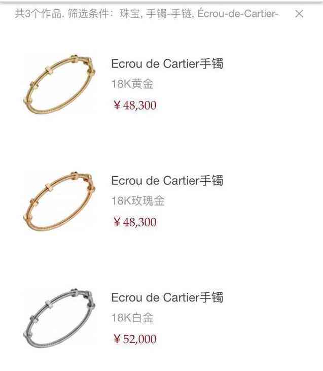 18、Ecrou de Cartier系列最低48300元,最高52000元。