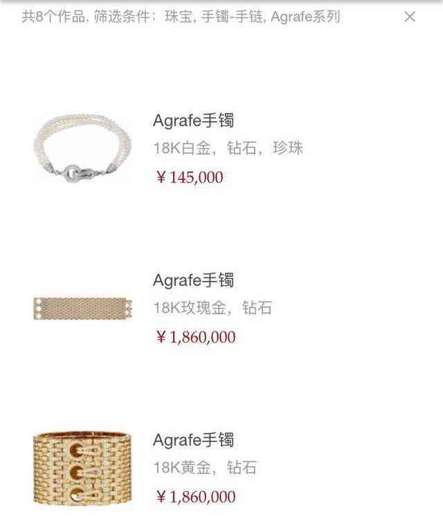 19、Agrafe系列便宜14.5万,Agrafe系列最贵186万。