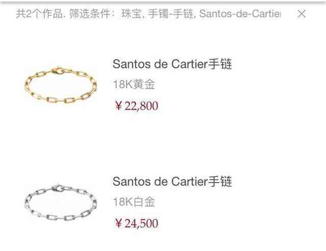 23、Santos de Cartier系列22800-24500元。锁链状手链。