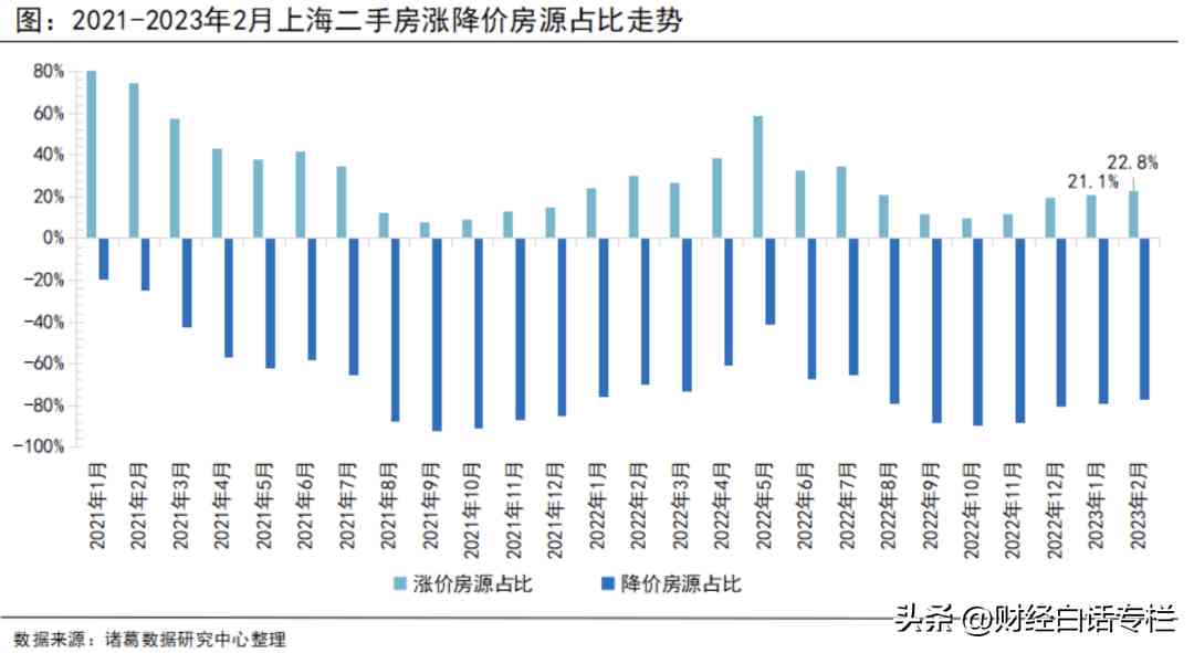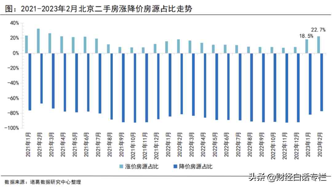北京的二手房成交量冲破了荣枯线,上海逼近荣枯线,但北京目前二手房涨价房源占比22.7%,降价房源占比77.3%。