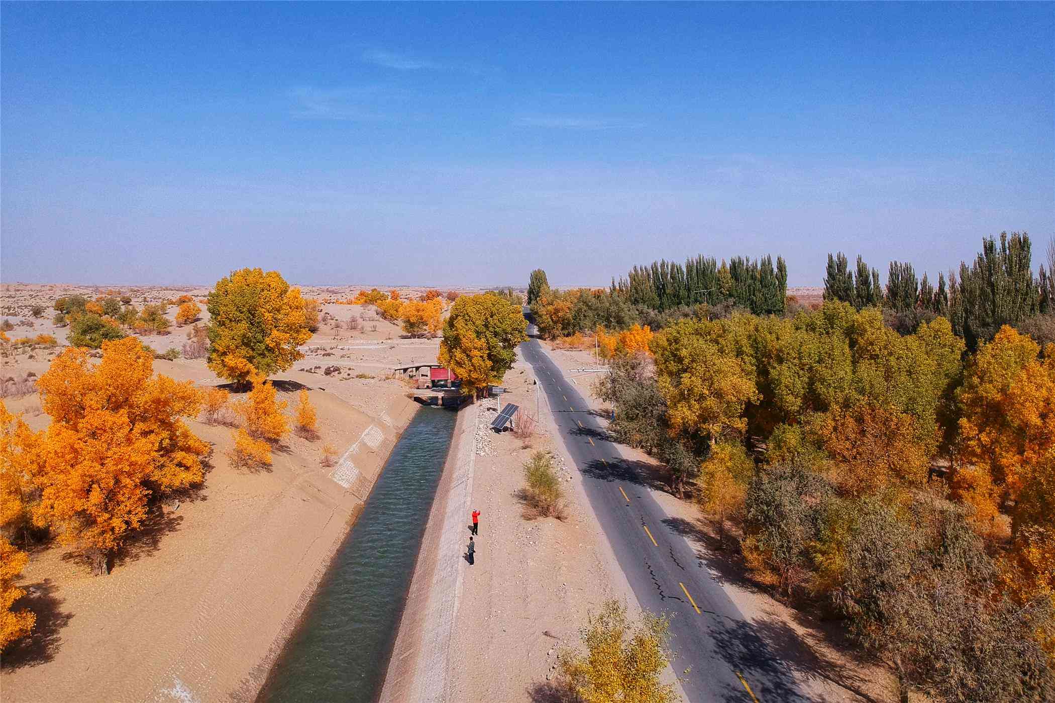 深秋,和田。前方是通往昆仑雪山的漫漫长路,大清晨,我们就开始沿着昆仑天路一直向前开,想要在中午时分抵达最美的昆仑雪山脚下,刚刚出发的路况很好,路两旁的杨树叶子在秋风的吹拂下渐次转变成金黄色,车轮飞驰而过,飞舞的落叶跟着车轮旋转又落下,这样的画面,这样深秋的旅行,对于远方,我满怀期待。