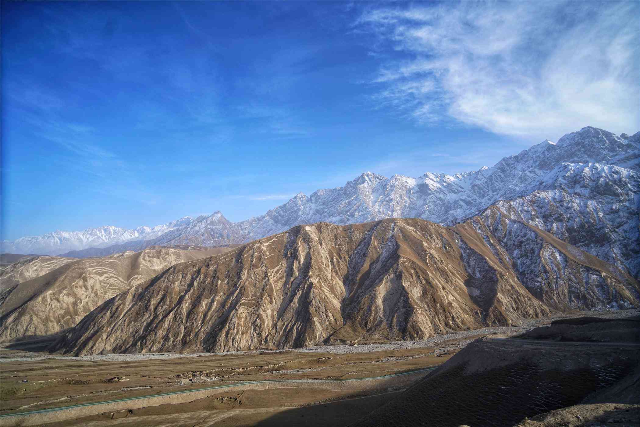 离开个观景台,我们继续前行,山势越发险峻,每一个大回旋的拐弯,都可以看到前方的雪山,昆仑山脉西高东低,按地势分西、中、东3段,西段从喀拉喀什河上游的赛图拉与叶尔羌河上游的麻扎通过的新藏公路,构成昆仑山脉西、中段的分水界。