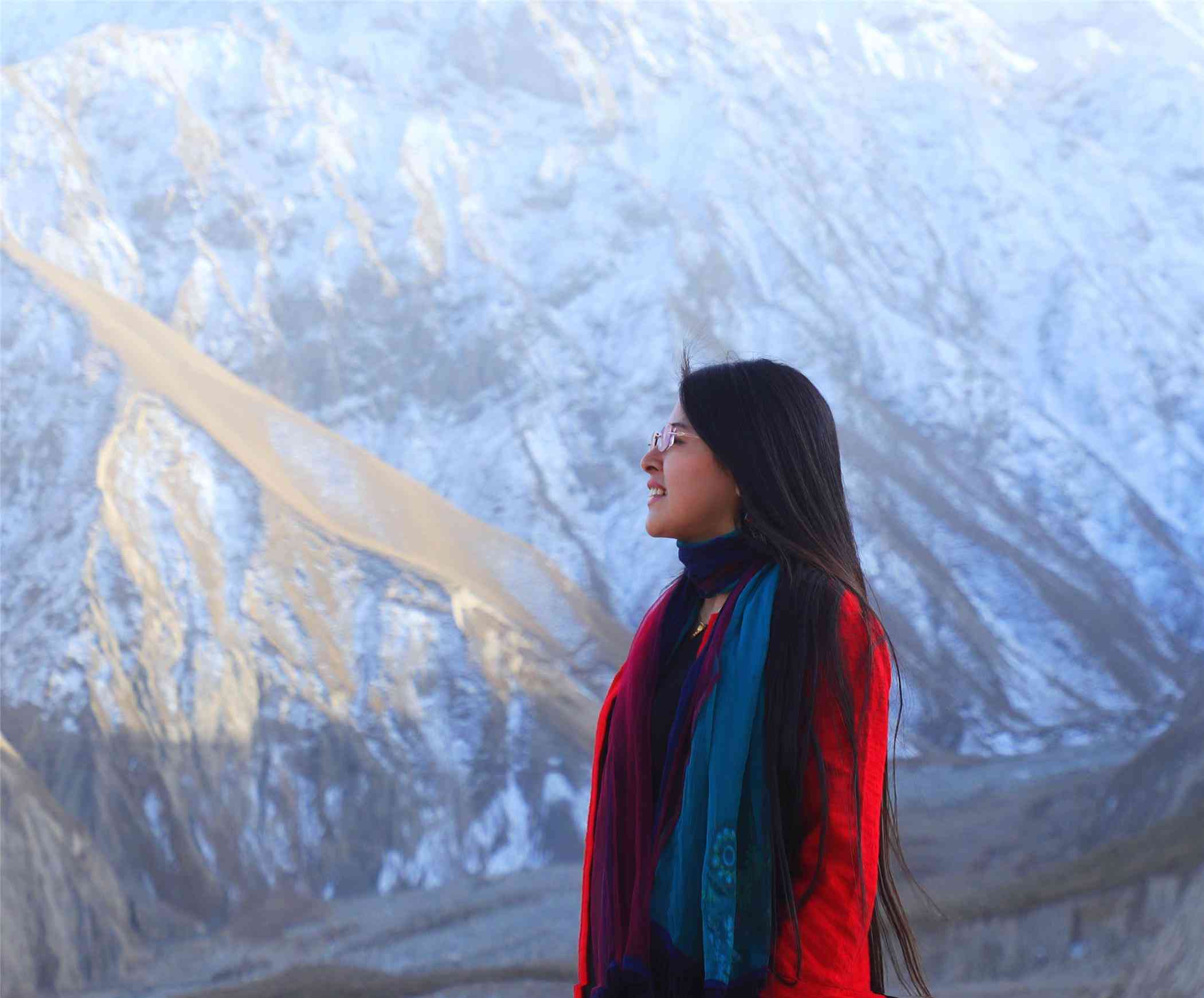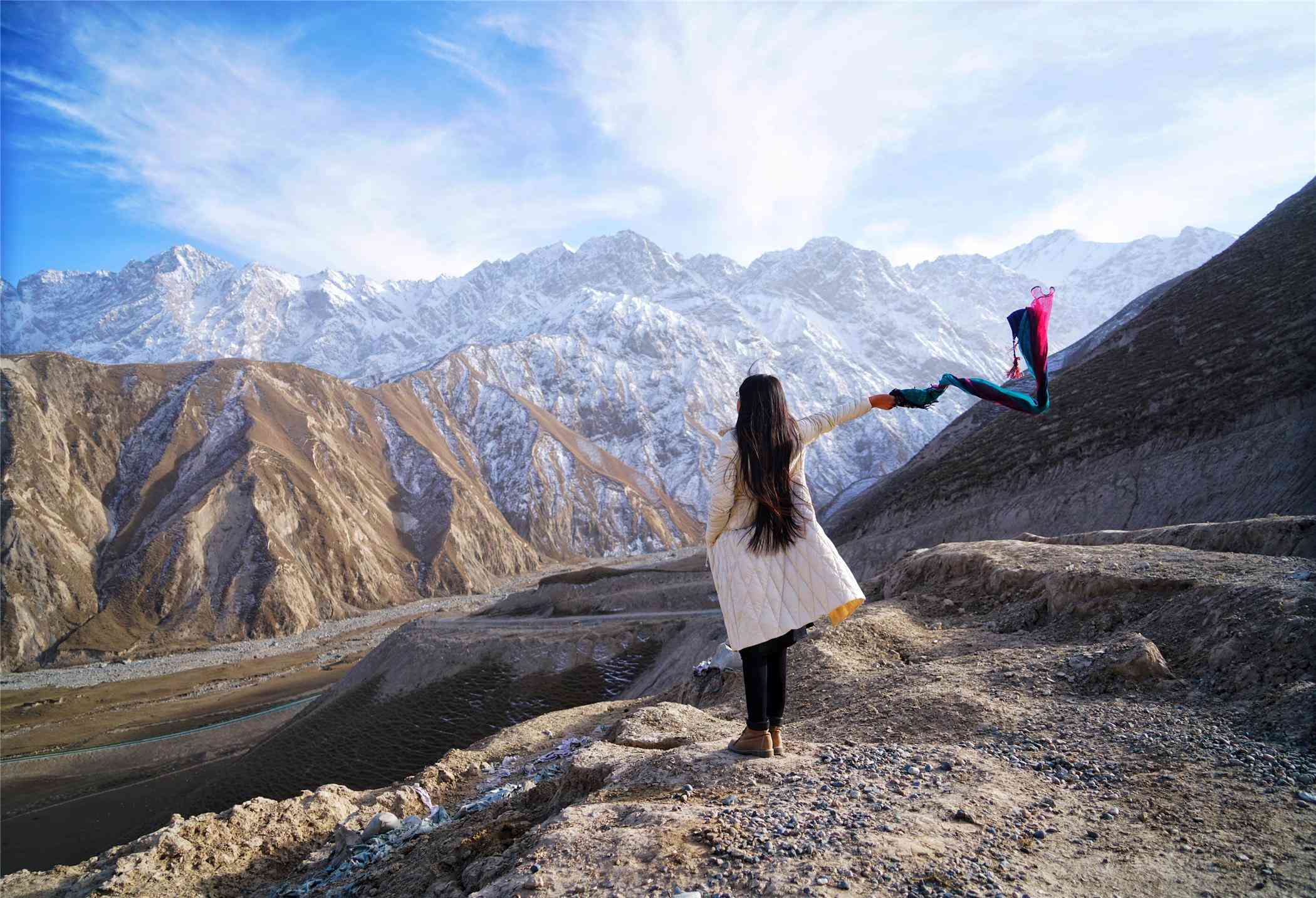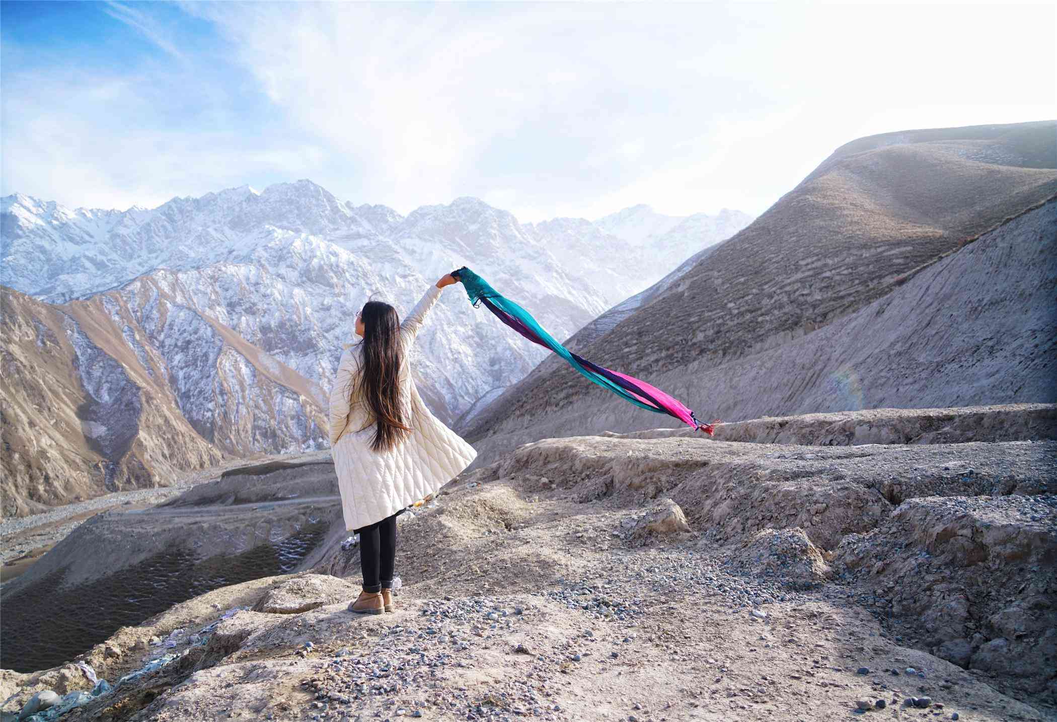 当我面对雪山,挥动手中的丝巾的时候,昆仑雪山以料峭的寒风回应我的每一次舞动,太阳强烈,雪山温柔,活在这珍贵世间,山在,大地在,云朵在,远方在,你被安稳的爱着呢,所以做任何事都要有勇气。