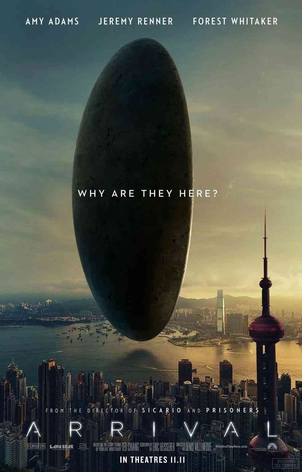 沙丘导演维伦纽瓦的另一部作品《降临》,悬在城市上空的外星巨型神秘飞船,虽然一动也不动,但却压迫感更甚…