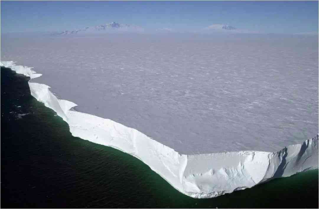 再来感受一下B15的厚度,想象一下如果地球上的冰川都融化,是种多么可怕的灾难…