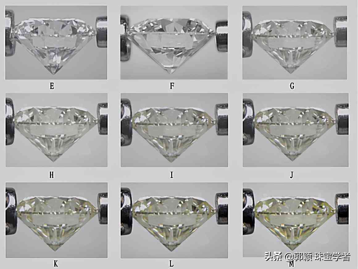 I 色:1ct 以下的钻石冠部观察无色,亭部观察呈微黄(褐、灰)色。