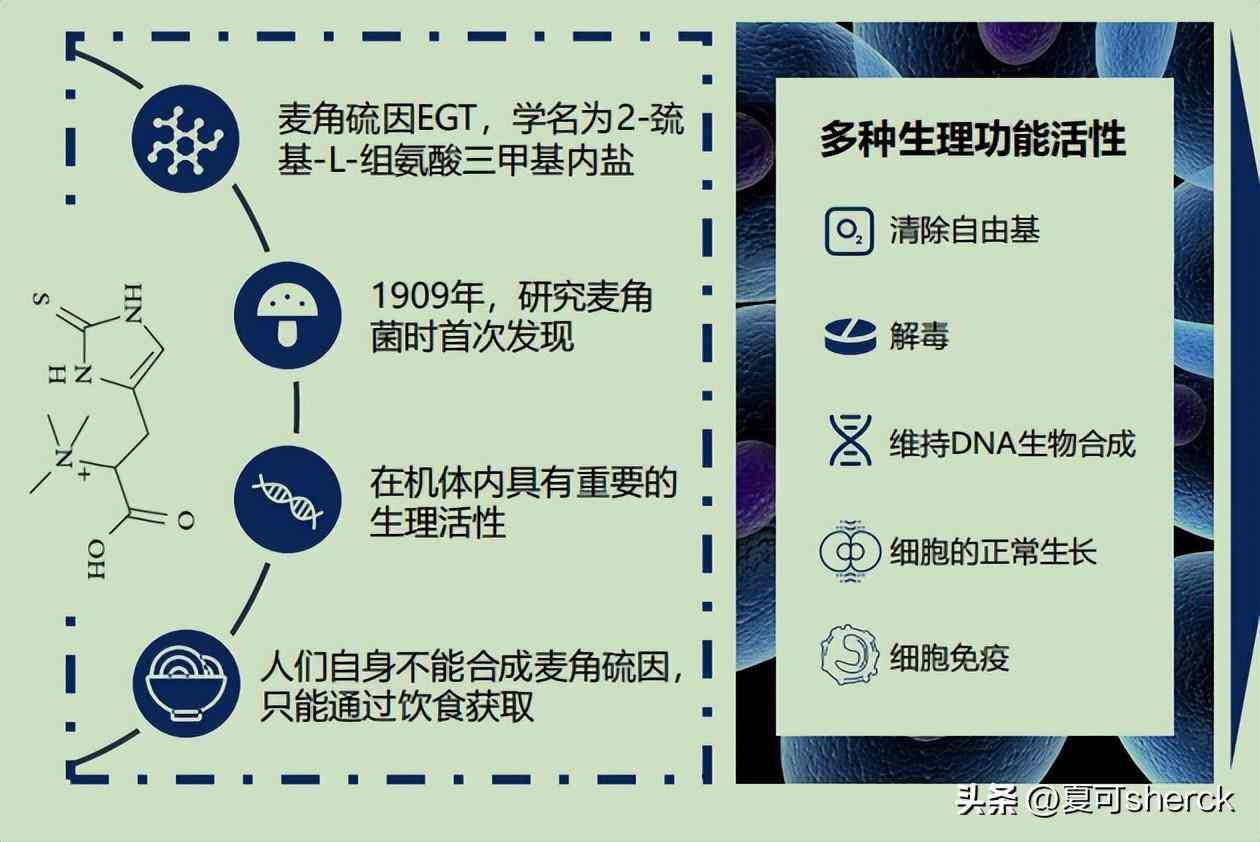 这个原料,抗氧化,对抗自由基。而且他是可以通过线粒体上的转运蛋白进入线粒体抗氧化和辅助修复的。而人等哺乳类动物不能自己合成麦角硫因。