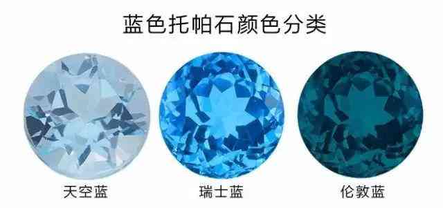 天空蓝托帕石呈现清新明亮的蓝色,瑞士蓝托帕石是鲜亮的浅蓝,伦敦蓝托帕石则是浓郁的深蓝色。