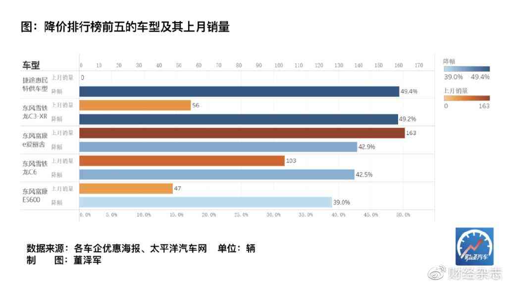 《财经》记者统计,降幅排名前5的车型,普遍都打六折,看似力度很大,但这些车型“恰巧”都是销量不佳的非热门款,大多出自东风系。