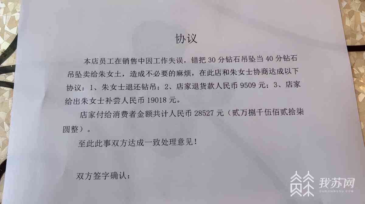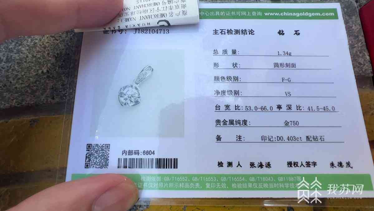 女子买0.4克拉钻石吊坠 商家却给了0.3克拉的