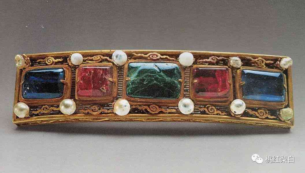 ▲明朝万历帝玉带的正中间位置,就镶有一颗巨大的祖母绿,左右两边为红宝石和蓝宝石点缀,现藏于明十三陵定陵博物馆。