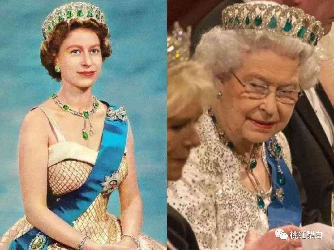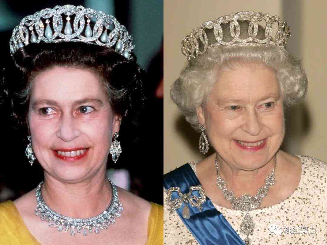 伊丽莎白二世特别喜欢用这条项链搭配弗拉基米尔王冠,从年轻时一直戴到现在。