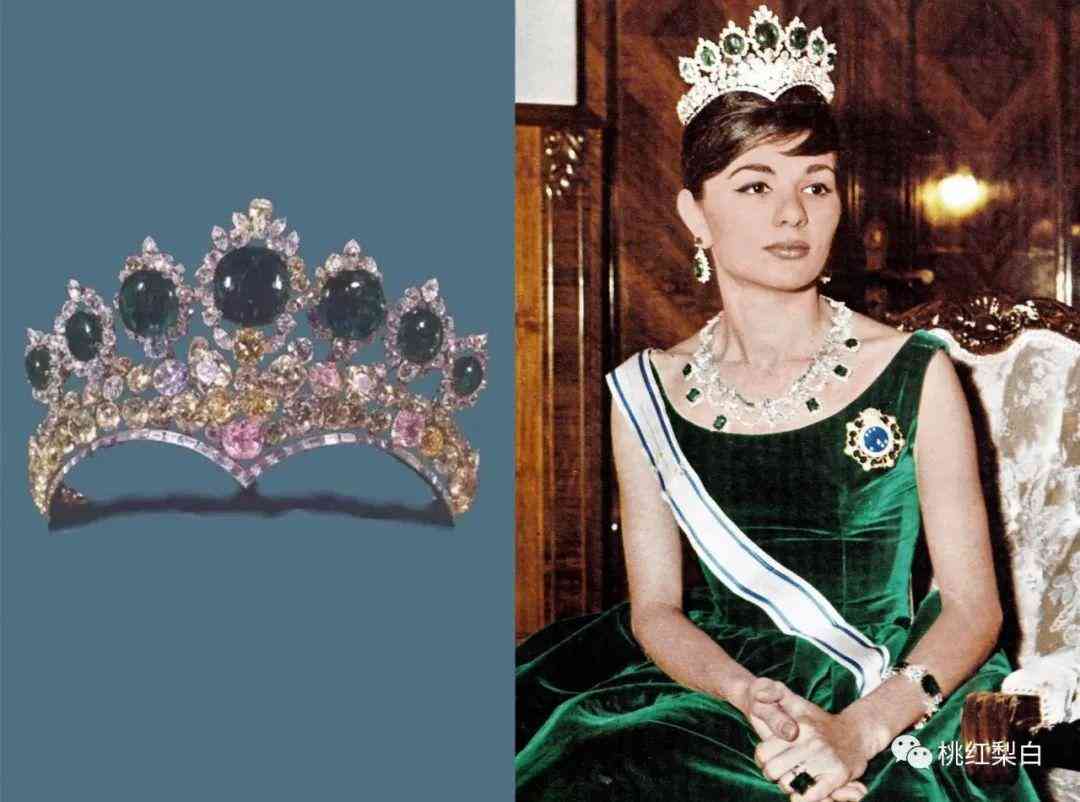法拉赫的另一顶Farah's Seven Emerald Tiara王冠也十分出名。