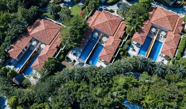 酒店分为两大板块,我们入住的是喜来登度假酒店,而这一边是精选酒店,不同之处在于格调更高,独立的小别墅带私人泳池,从空中看过去更添一份美感。