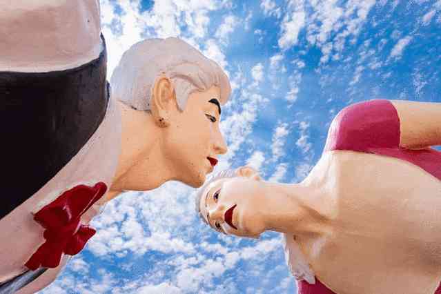 铁索桥虽然变成了木板桥,但不变的是情侣们来此相拥看海的愿望,桥头竖立的KISS雕塑便是最佳的背景墙,无数小情侣排队在这下面拍照,我们也凑热闹来了几张,嘿嘿~