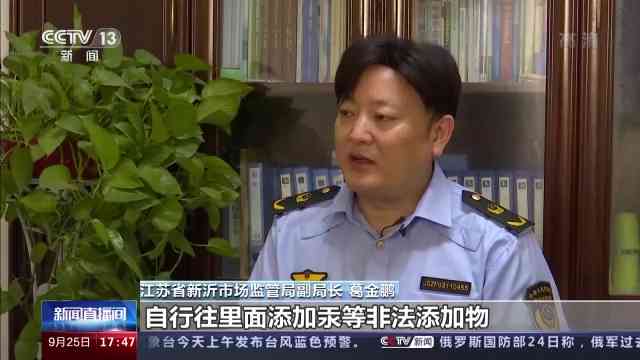 江苏省新沂市场监管局副局长 葛金鹏:这起案件,我们执法人员捣毁生产窝点两处,销售窝点五处,查扣违法添加原料1500千克,成品一千余箱,货值金额超过3500万元。另外,这起案件我们抓获犯罪嫌疑人8人,目前以生产销售伪劣产品罪移送司法机关追究刑事责任。