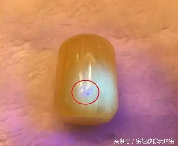 最后,用荧光灯观察,琥珀的荧光跟胶水的荧光是不一样的。