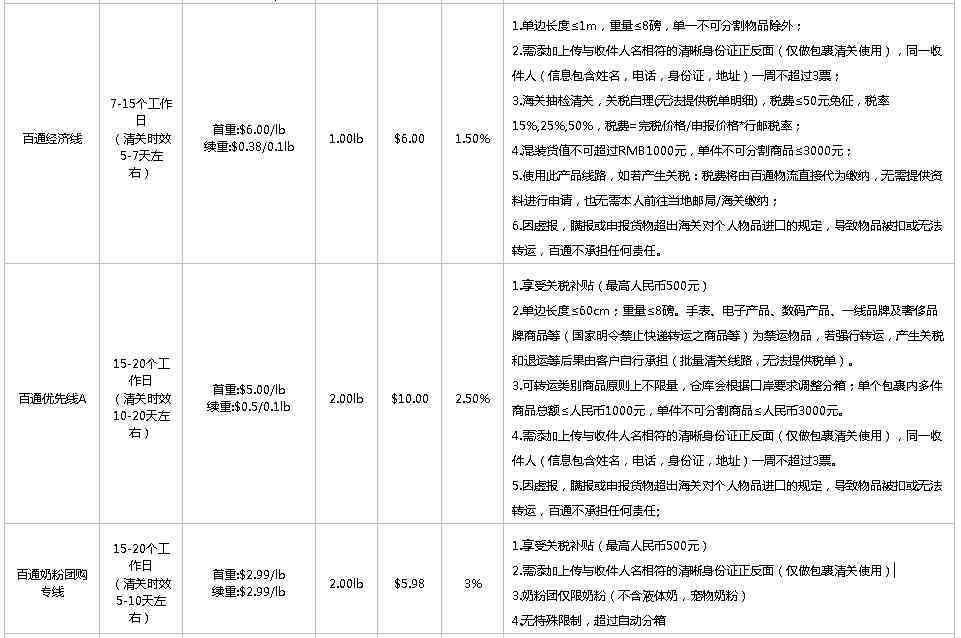 【优势】: 百通物流线路多,清关口岸多(这个是保密的,但是有代号可以看出),选择相对灵活;开通了真正的关税补贴线路——百通优先线A,最高可享受500元的关税补贴。