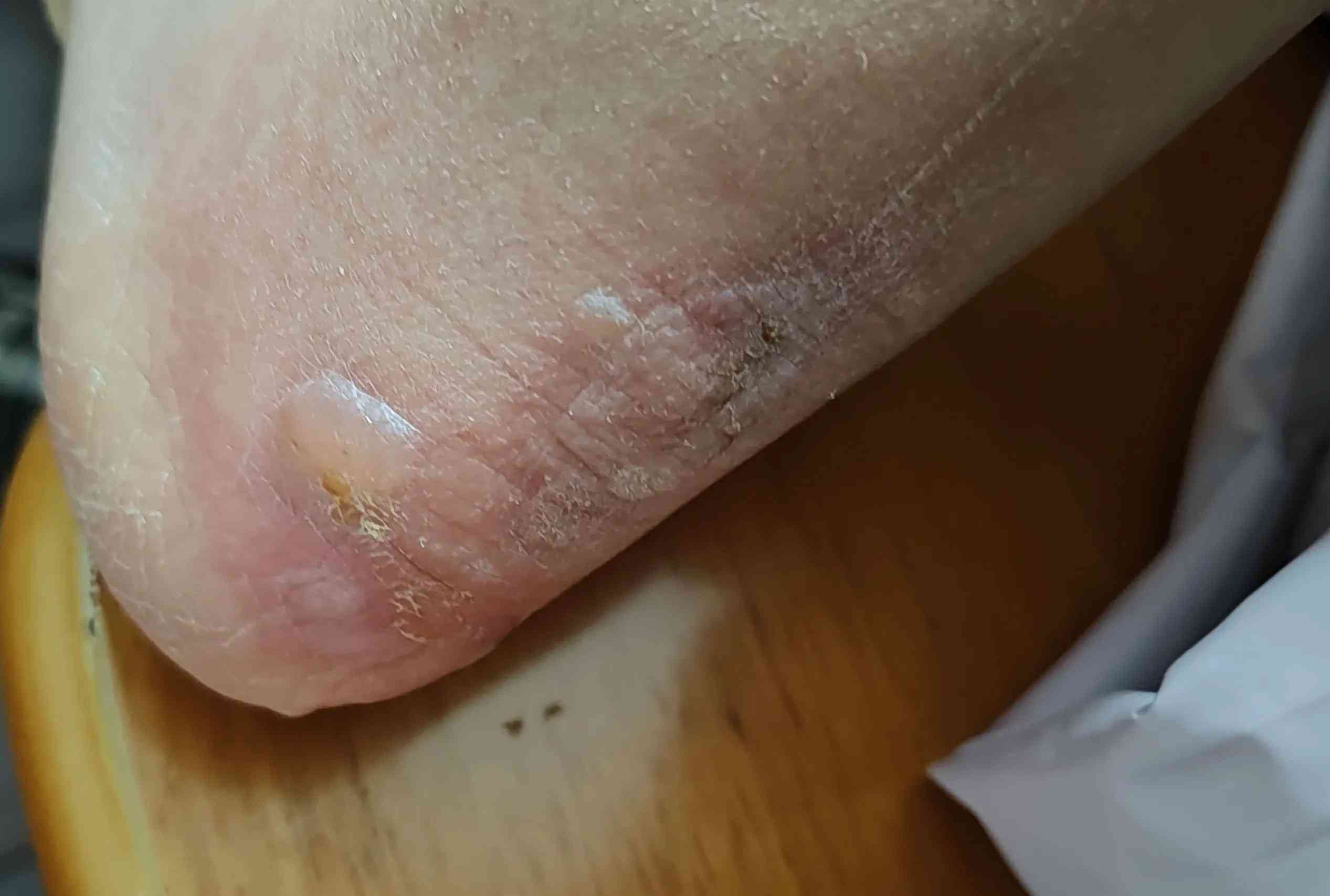 除了这脚后跟的热烈,小腿的干燥脱屑清晰可见,脚底的粗糙皲裂若隐若现。
