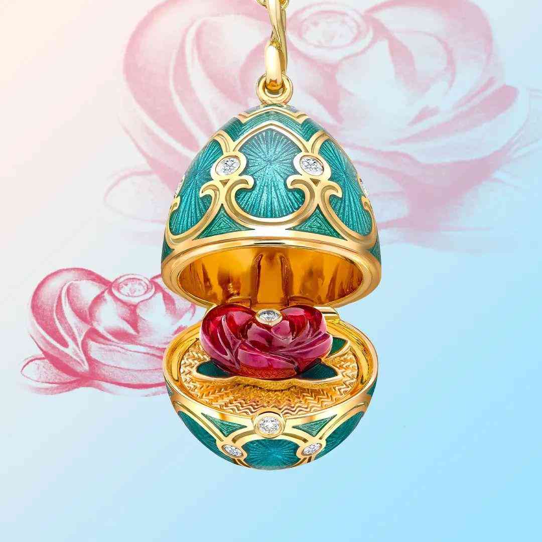 费伯奇推出情人节限量作品“红宝石玫瑰惊喜”吊坠,本款作品全球限量10件,其中的鲜红玫瑰由一整颗经过加工的Gemfields莫桑比克红宝石手工雕琢而成,花蕊中央还嵌有一颗白色钻石。