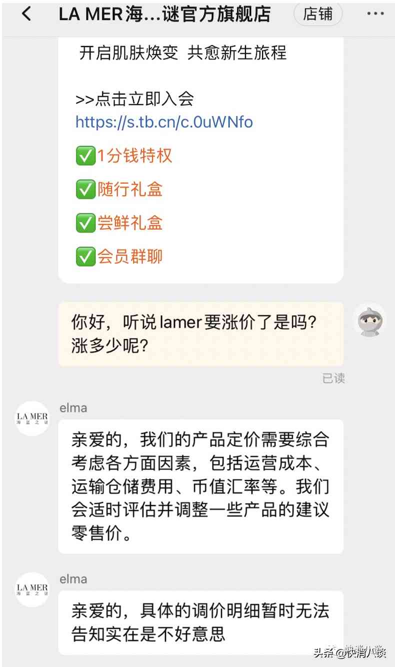 海蓝之谜就又贵了”