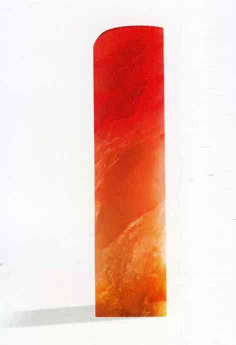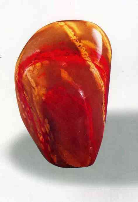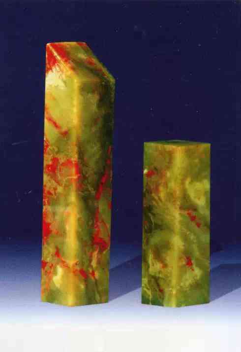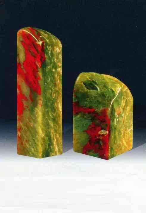 【外貌特征】石体血色,黄色青色相衬。血红透黄,显帝位之尊;地润泛青,露王者之气。