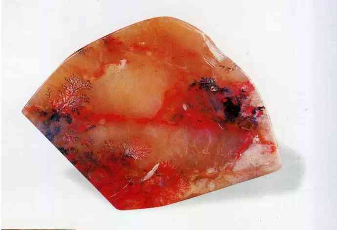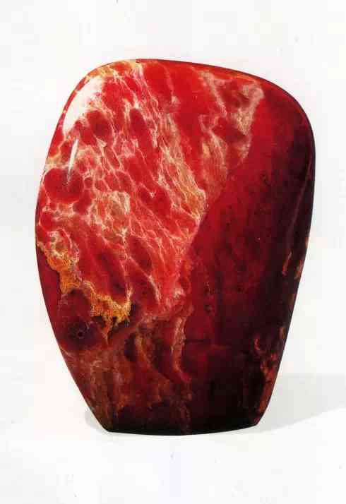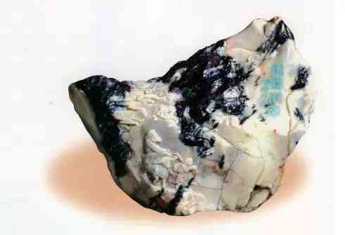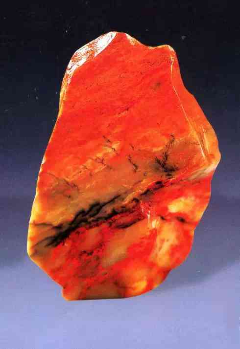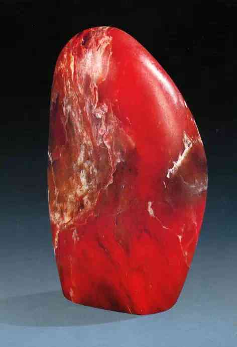【外貌特征】在乳白色或黛青色相交的石面上,血色纹理如字似线,错落有致,层次分明,犹如“丹书铁卷”。
