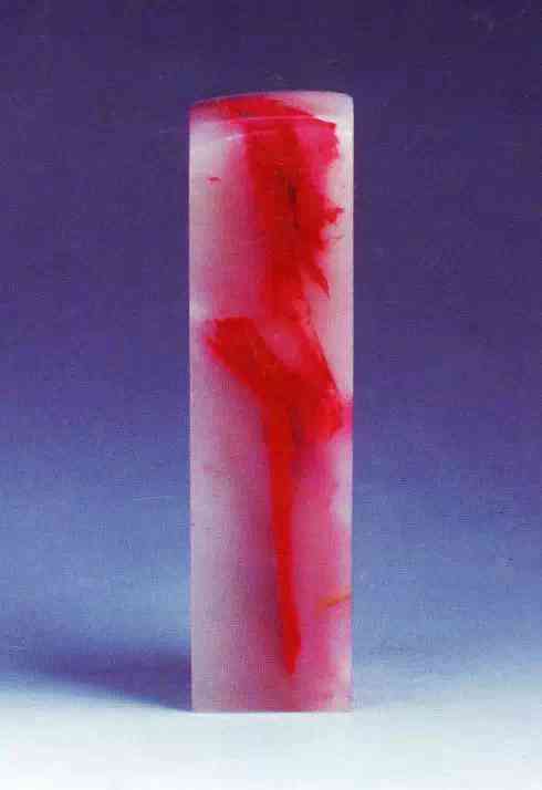 <外貌特征>浅粉色,浓鸡血,红色粉色或杂糅或相间,冻石质地,温润典雅,恰似一杂盛开的红芙蓉。