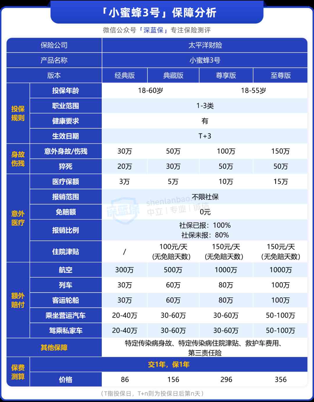总体来看,小蜜蜂3号是一款很不错的成人意外险产品。