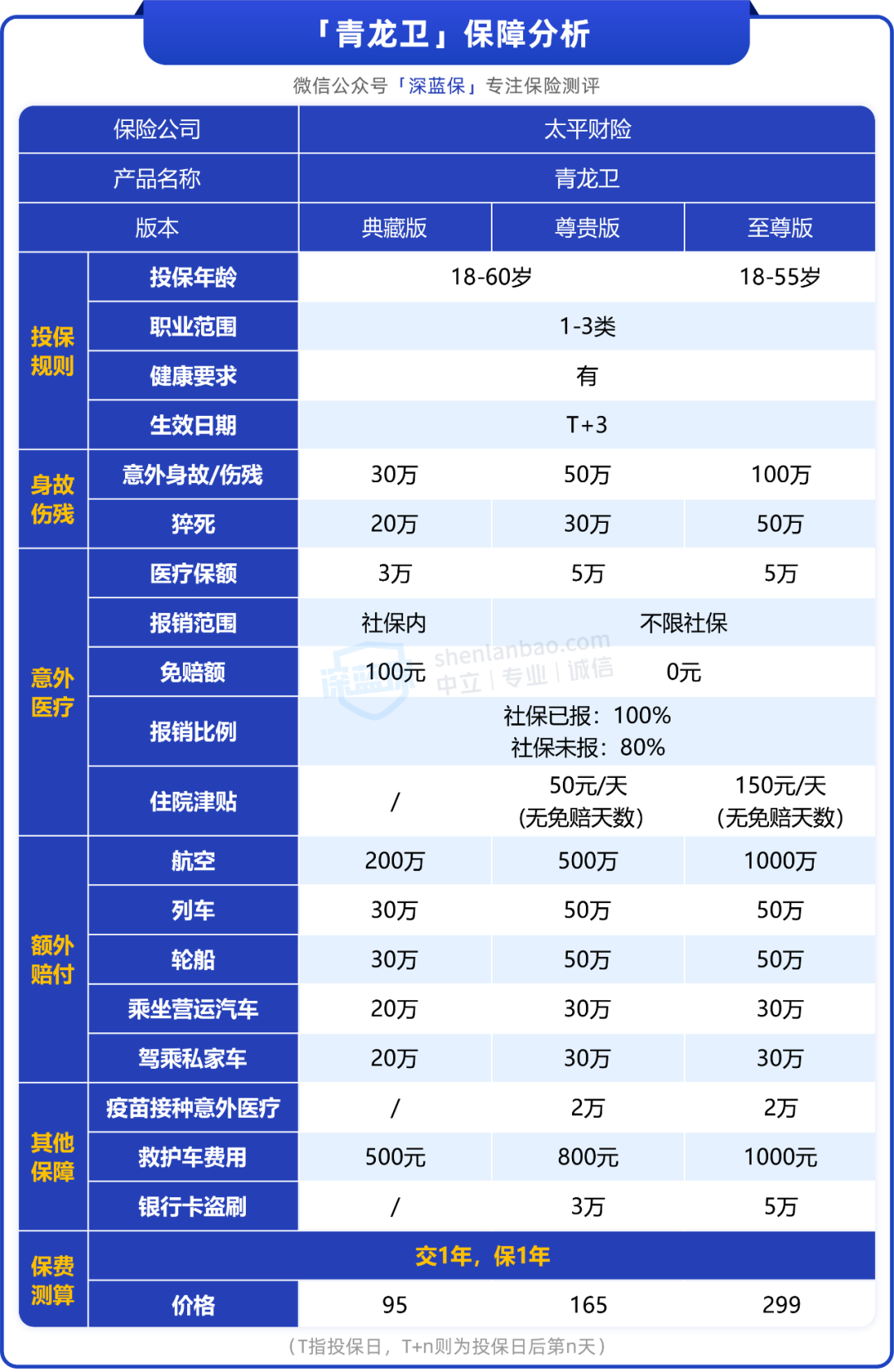 接着,我们再来看看第二款新品青龙卫,它由太平财险承保,共有三个版本: