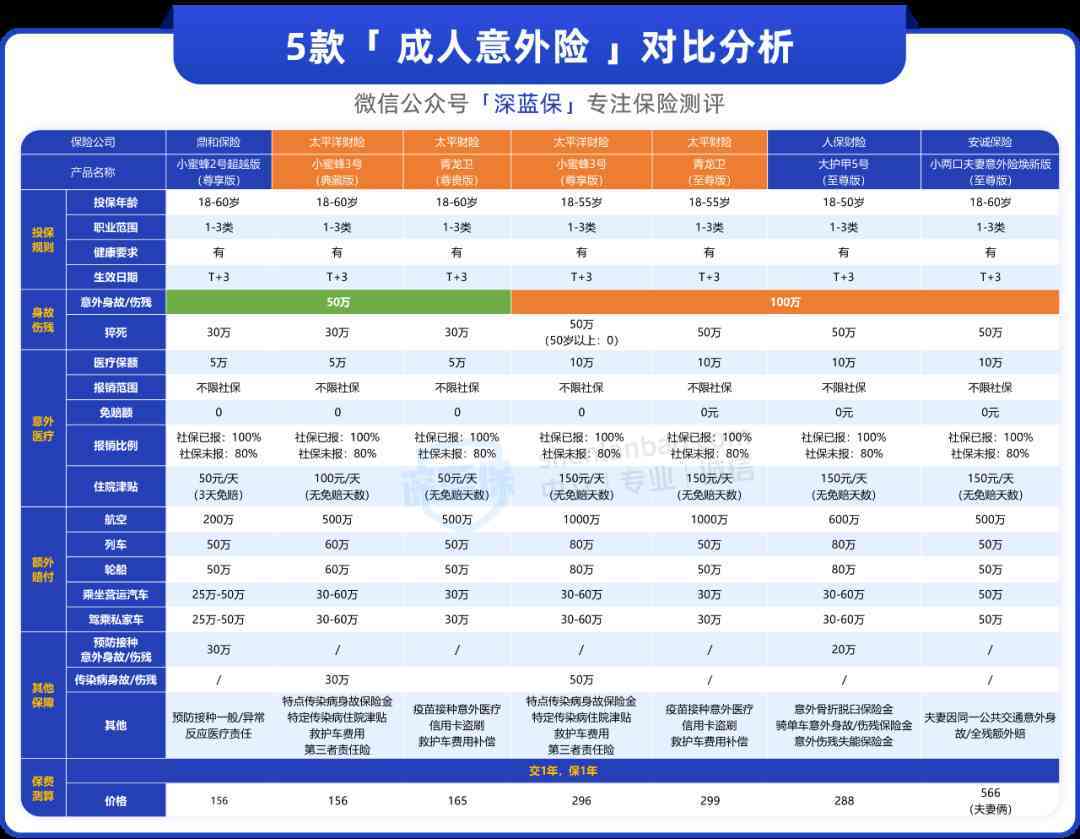 如果想买50万保额:可以考虑小蜜蜂3号,基础保障差不多的情况下,它的住院津贴更高,也没有免赔天数;另外青龙卫的保障也不错。如果想买100万保额:可以考虑大护甲5号,意外医疗保额高,报销条件好,而且价格便宜。如果患有二级及以上高血压,可以考虑青龙卫,高血压可以正常投保。小两口夫妻意外险适合夫妻两人一起投保,价格很便宜,保障也很全面;此外还能附加子女意外险,保障不错,也方便保单管理。